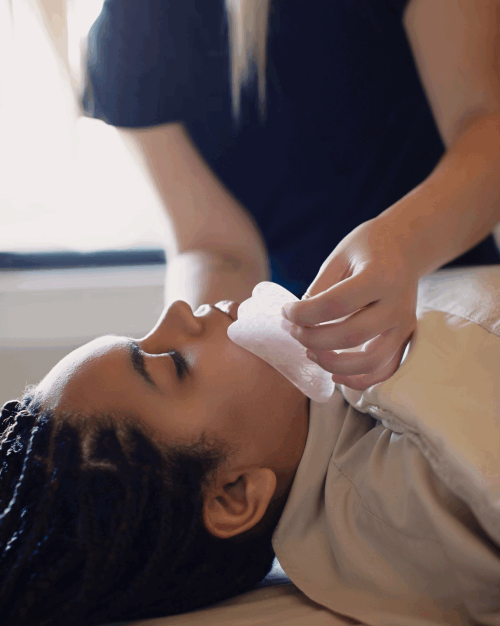 The tool is inspired by the Traditional Chinese Medicine practice of Gua Sha which is believed to aid circulation, reduce inflammation and support lymphatic drainage of the skin. The term Gua Sha is often translated as “scraping”, since the technique is characterized by moving a flat, blunt-sided object against the skin in repeated upward strokes.
