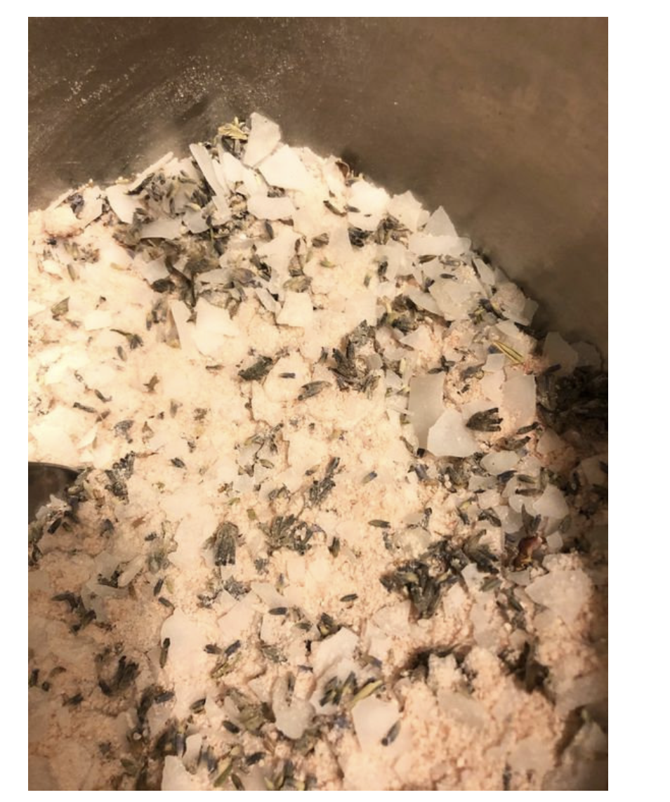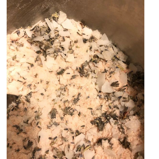 Organic lavender, magnesium salt chunks, Himalayan pink salt