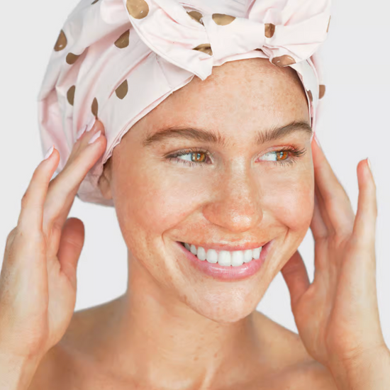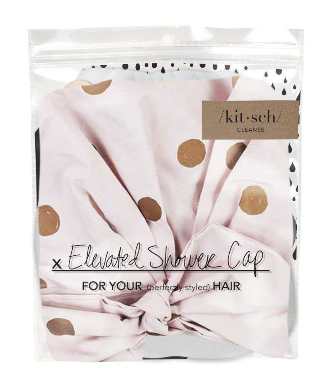 Recycled Polyester Luxe Shower Cap - Blush Dot