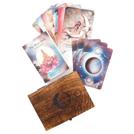 - A handcrafted one of a kind wood Moon Box to store your oracle set